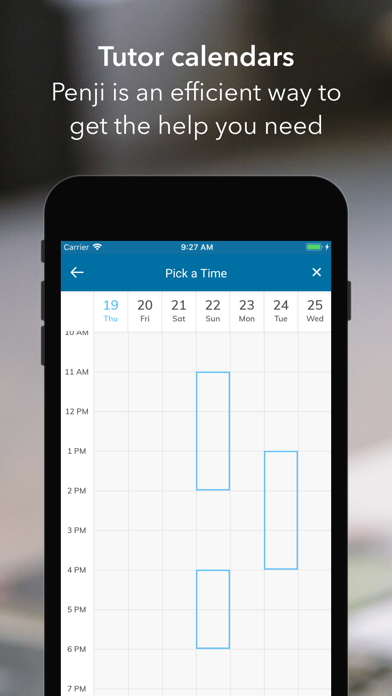 Penji is the central hub for tutoring, advising, and other support resources on campus. We partner with support centers at your university, allowing them to provide a modern, mobile-first, and remote-friendly experience for scheduling tutors, mentors, and coaches. Book appointments, attend drop-in hours, register for large-group sessions, meet study groups, and more, all from the app.
