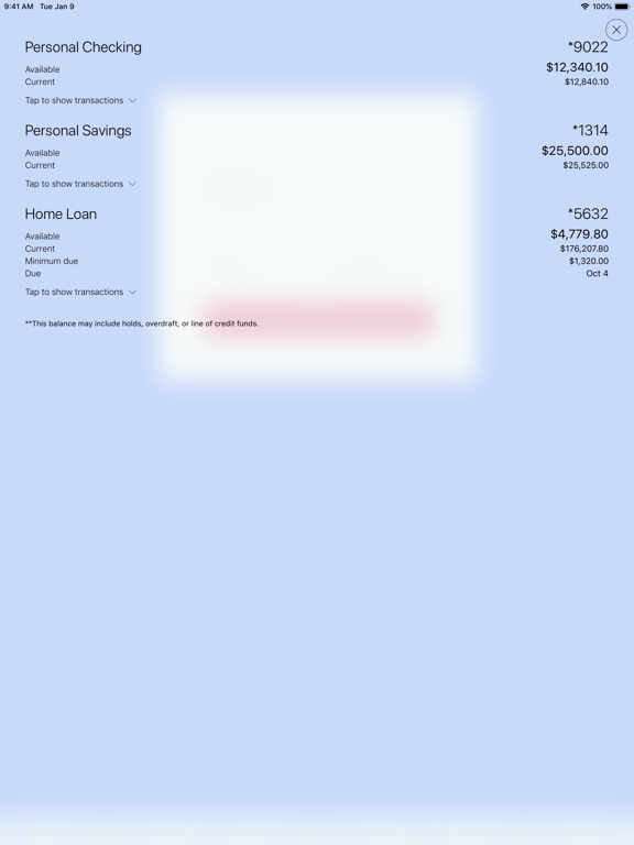 - Use quick balance to check your account balances without having to login.