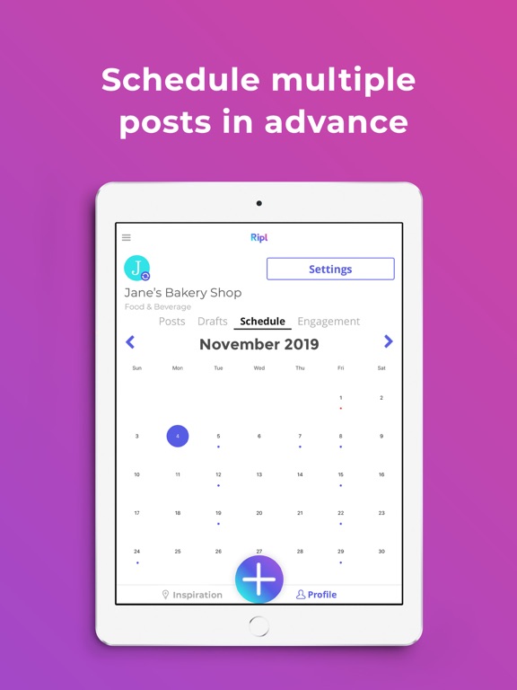 Ripl’s mobile and desktop browser apps make it easy to create new posts, edit drafts, and schedule to your social channels wherever you are.