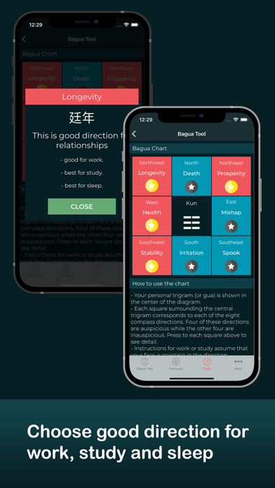 - Provide tools to view relationship compatible, find your good direction to work, study and sleep.