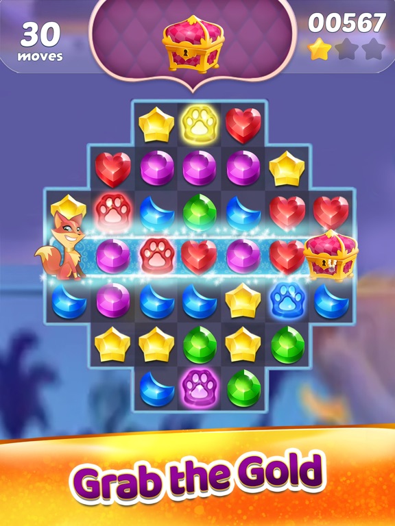 Journey through mystical worlds with Jenni the Genie and her companion, Trix the Fox, to crush the thieves that have stolen the Palace’s riches. Swap ,match, and crush gems, recover ancient relics, and collect gold bars and enchanted keys on this one-of-a-kind enchanted exploration!