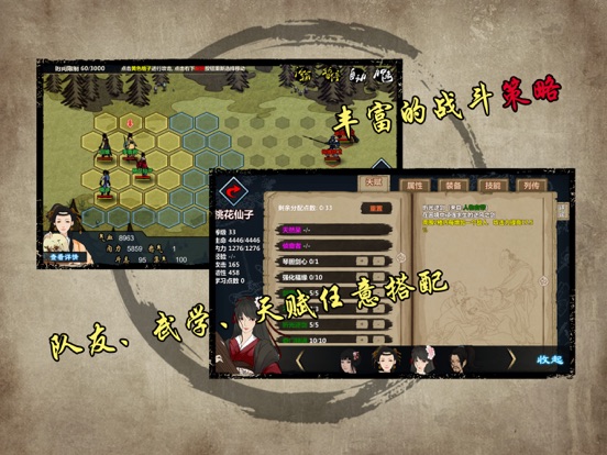 - 100+可学习武学,数百种招式,高度自由的武学、天赋、心法搭配!