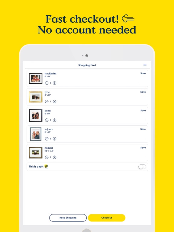 Looking to redecorate? It’s easy to create the gallery wall of your dreams within the Keepsake app. Add a variety of sizes and styles to your shopping cart and a few days after you order you'll receive the gallery wall your home has been begging for.