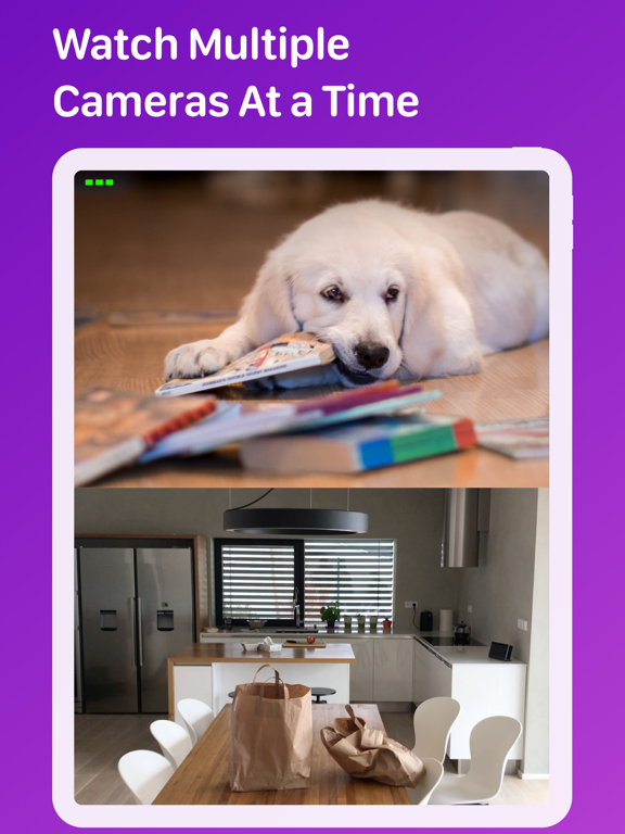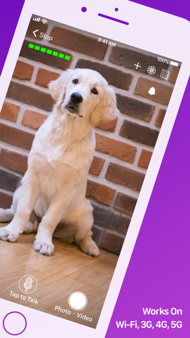 Leave an old iPhone or iPad running the app at home as a pet camera. Use your iPhone to receive noise and motion alert notifications from the pet camera. Connect back home and watch live, record videos or take pictures of your pet's funny moments. Soothe him remotely when he misses you.