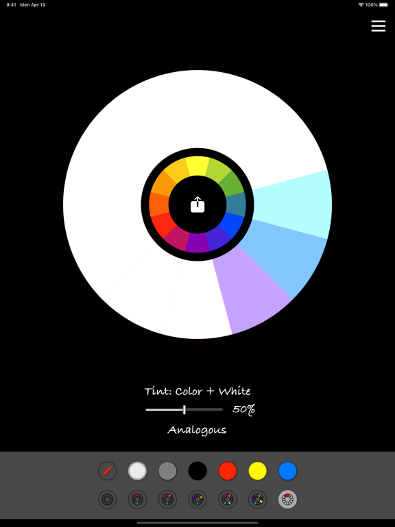 Select a color scheme in the bottom toolbar. Rotate the wheel to change the color combination.
