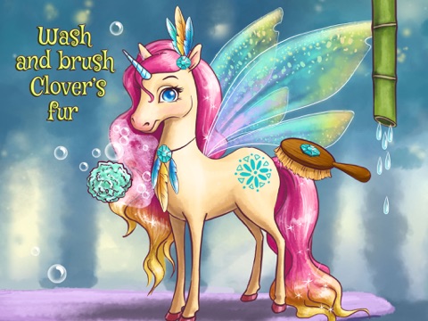 HORSE CARE. Take good care of pixies' best friend unicorn Clover. Wash it with a bubbly sponge, use the magic wand to change unicorn’s hair color and comb to make Clover’s hair sparkling. Play unicorn dress up and decorate it with gorgeous accessories: diamonds, flowers and ornaments!