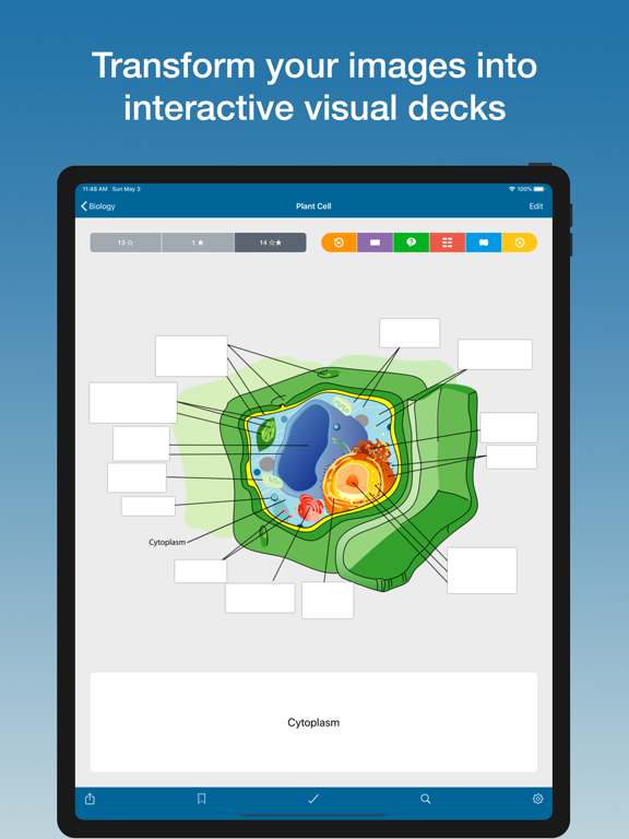 • Take dynamic quizzes from multiple decks (spelling, multiple choice, fill in the blank, typing, drawing, audio, ordering, matching, true/false, tap the visual area).