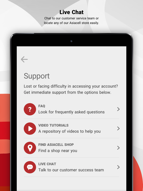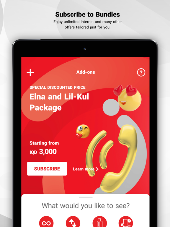 With the Asiacell App, you now have a quick and easy way to check all your balances, recharge your balance, recharge your internet quota, and pay your phone bills. It is available 24 hours a day, seven days a week for your convenience.