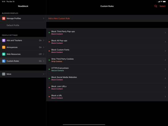 Control your web browsing experience with Roadblock, a powerful and lightweight content blocker for Safari. Roadblock blocks unwanted content, protects your privacy and security, improves webpage load time, and reduces browsing data usage.