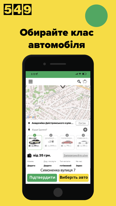 549 - мобільний додаток, який дає можливість замовити поїздку в один клік та легко оплатити її банківською карткою, готівкою чи накопиченими бонусами.