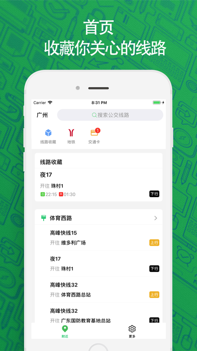 ※广州公交的实时位置,公交到哪了,公交还有几站到,公交还有多久,公交实时路况等等。手机一秒变身公交电子站牌,分分钟成为公交地图达人,再也不用为公交塞车而担心了,可谓公交出行导航必备神器。 ※广州公交查询排行首位 【产品优势】 1.支持收藏你关心的线路。 2.支持实时查看公交车走到哪里。 3.支持羊城通余额查询。 4.支持羊城通余额不足提醒。 5.支持地铁线路查询 6.支持3D Touch。 7.操作简便,信息详尽,极简风格,清新自然。 【用户留言】 "界面简洁,信息准确,添加羊城通卡号还显示余额,非常好用的一款APP!" - by 猪兜宝宝 "经过测试,实时数据还是比较准的。现在等公车心里有底了。" - by 树桅张帆