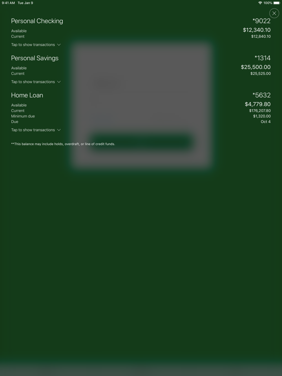 • Deposit checks right from your iPhone or iPad