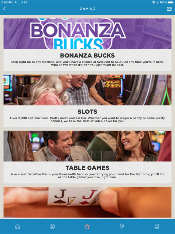 Get updated information about all the hottest active and upcoming promotions, dining outlets and specials, and entertainment line-up. We have the best Jackpots around, check real time jackpot values for Bonanza Bucks, Table Games and Bad Beat. Our poker room has a variety of games including Omaha and Texas Hold ‘Em, you can check out all active games and even see if there is a waiting list!