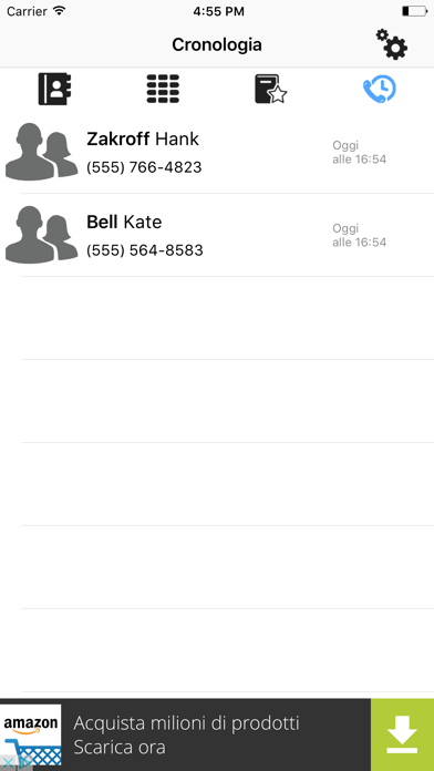 4) La sezione ULTIME CHIAMATE mostra le ultime 10 chiamate effettuate direttamente dall'applicazione "Prefisso Aziendale", con informazioni sul numero, la data e l'ora della chiamata.