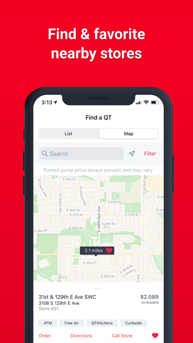 Use the app to order a variety of in-store and QT Kitchen items. Save time by having your order ready when you arrive! Select from items including chips, candy, bottled drinks, and freshly made breakfast, pizza, pretzels, sandwiches, and frozen treats from QT Kitchens. More items are constantly being added.