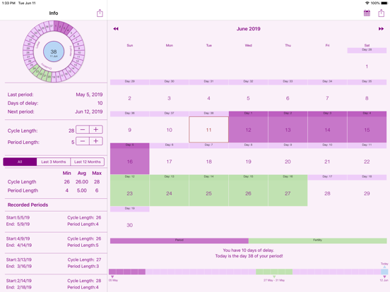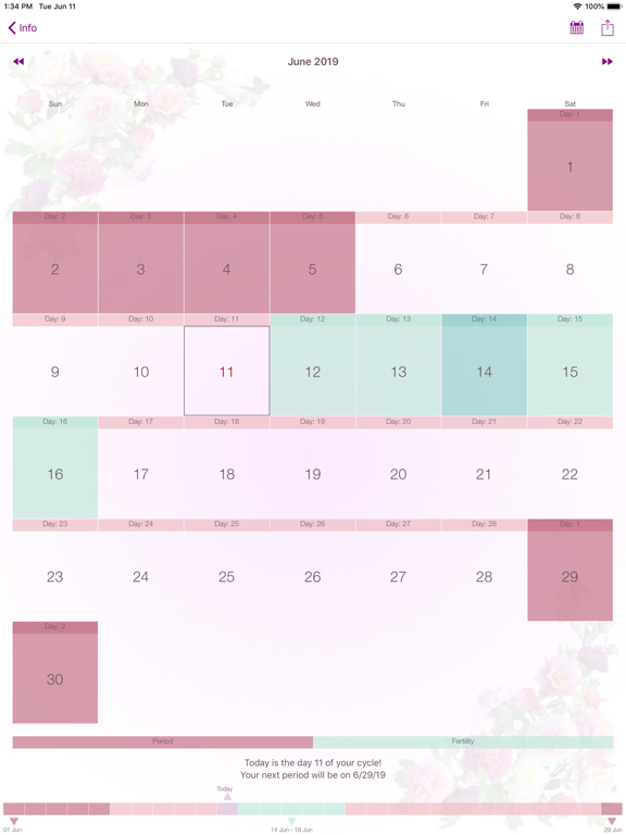 My Period Calendar is an app to monitor and predict the menstrual cycle and the fertile period in a simple and fast way. It can also store notes, moods, symptoms, weight and more and provides you with useful information about your cycle. This app is accessible with VoiceOver.