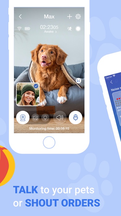 Click on the microphone icon to talk to your pet. You can shout commands like “Stop barking!” or soothe your little puppy or kitten.