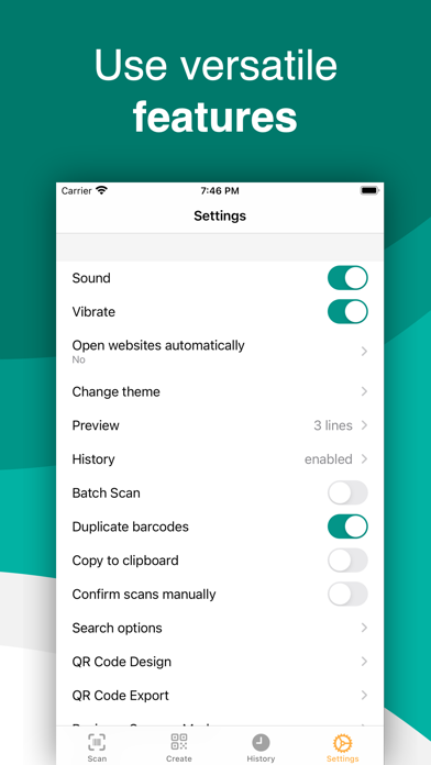 • Export your scan history (as CSV file). Import it to your favorite spreadsheet (Excel, Numbers, etc.) or save it to any cloud storage (iCloud Drive, Dropbox, Google Drive, etc.).