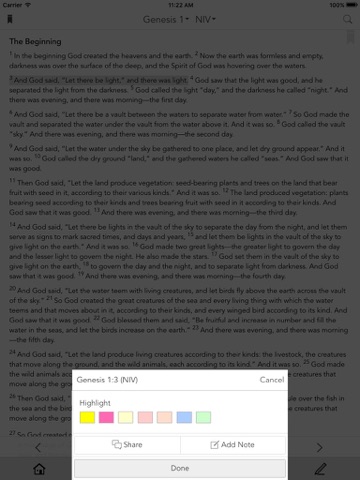 * Facebook: You can share a Bible passage, journal entry or anything in the app with one click.