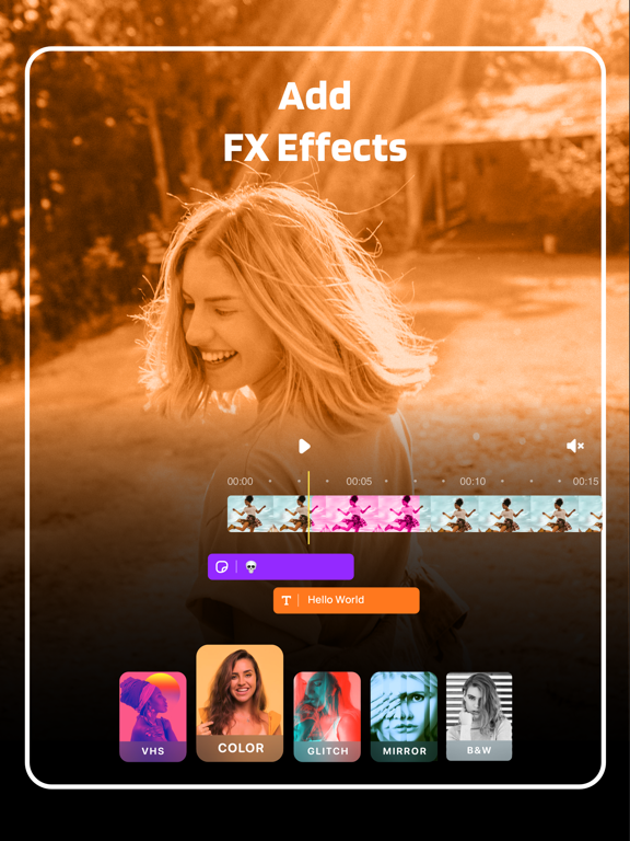 Video FX is a powerful 1-CLICK video effects studio for your Vine, Instagram, Flipagram and Dubsmash videos. Just one click to add beautifully crafted effects to your videos.