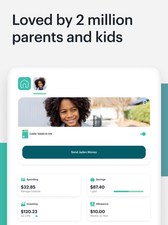 Greenlight is a debit card and app for managing family finances. With the Greenlight app, kids and parents have companion apps with two different experiences. Kids can save, earn, invest, spend and give — with parent approval on every transaction. Parents can choose the exact stores where their kids spend, manage chores and allowances, set parent-paid interest rates and more.