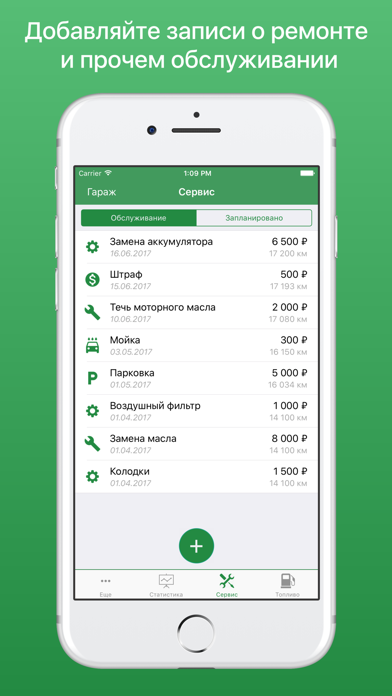 Введите записи о ремонте и об прочем обслуживании, разделяйте записи по категориям и приложение рассчитает и покажет на графиках на какую категорию Вы тратите больше всего. Также Вы можете добавлять фотографии и заметки к записям об обслуживании.
