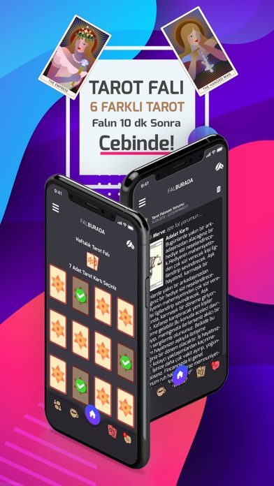 Tarot Falı • 6 Farklı tarot falı açılımını uygulama üzerinden ayrıntılı olarak okuyabilirsin. 78 Adet tarot kartından istediğini seç - yolla - 20 dakika içinde fal yorumun cebinde.