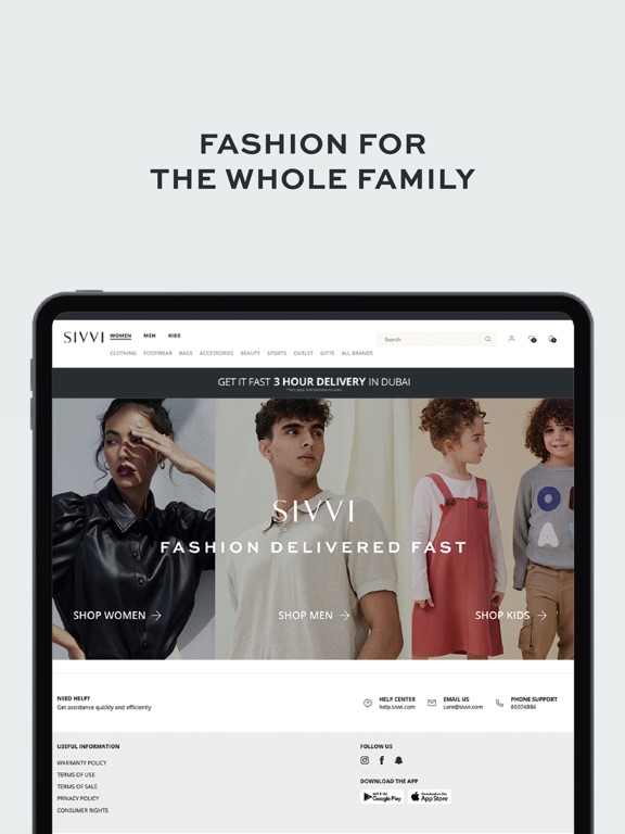SIVVI is the only app you need for shopping fashion in the Middle East. Find the biggest brands for the best prices, and be inspired by the latest trends and easy to shop edits for women, men and kids. Discover exclusive offers, and get your items delivered in record time with 3 hour delivery in Dubai, same-day delivery in Riyadh and next-day delivery in many KSA and UAE cities.