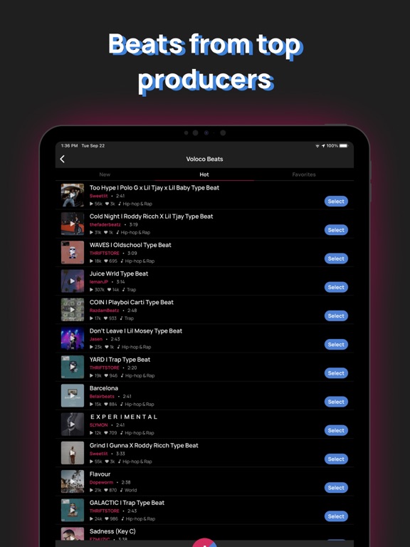 Check out some of the professional-quality tracks users have made with Voloco in the Top Tracks section of the app.