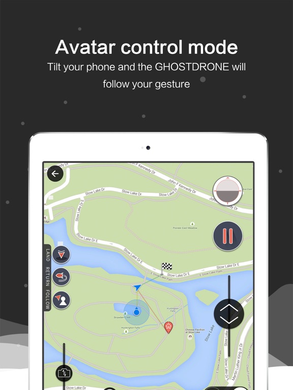 No need to worry about which direction the drone is facing. Just drag the button on the micro control panel and GHOSTDRONE will follow the direction in which you drag.