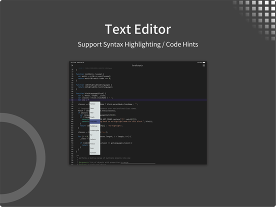 * Support editing format : Json, HTML,XML, C/C++, Lua, Java, Objective-C, Swift, Python, JavaScript.