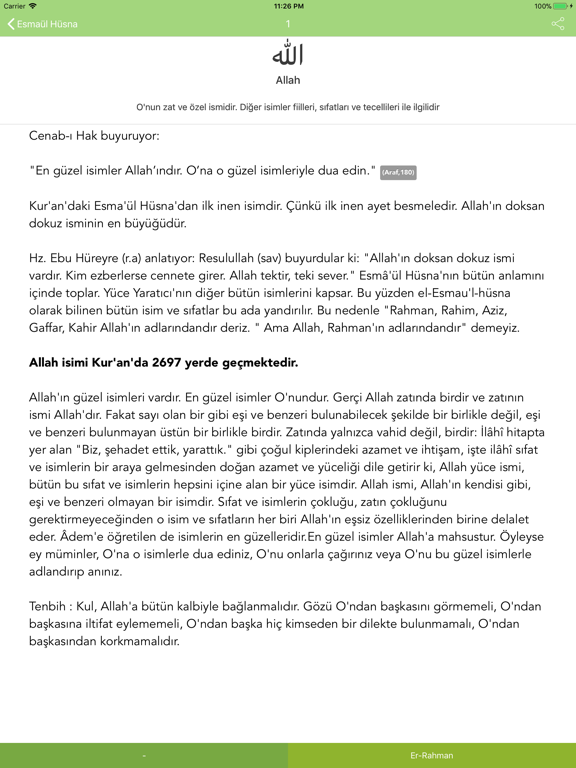 • Kur'an'da Allah'ın İsimleri'ne "En Güzel İsimler" referansı verilmiştir. Ayetlere bakınız: "El-A'raf" (7:180), "El-İsra" (17:110), "Al Ta-Ha" (20:8) ve "El-Haşr" (59:24).