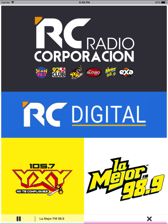 RC APP te permite escuchar las radios pertenecientes a Radio Corporación (EXA FM 91.3, SCAN 96.1, YXY 105.7, La Mejor FM 98.9, 92.5 Club y FM Globo 93.3). Disfruta de las mejores radios de El Salvador.