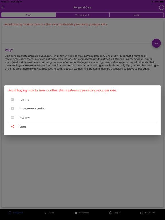 • Track your progress by marking which tips you are doing and which ones you are working on and earn badges by taking action