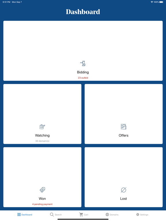 • Bid on domains and know instantly if you're the highest bidder or if you've been outbid.