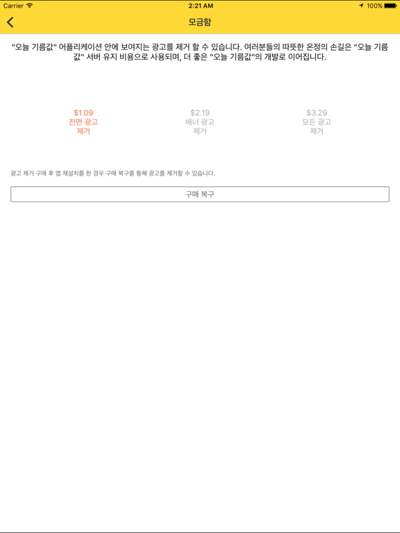 Smart 한 시대에 Smart 하게 주유하자! 내 주변 주유소/충전소의 기름값을 빠르게 검색해 보세요. 전국 주유소를 내 폰안에 담아보세요. 전국 주유소/충전소의 가격을 실시간으로 검색할 수 있습니다. 고유가 시대에 스마트하게 주유 할 수 있도록 도와줍니다. • 행정구역 기준으로 검색 • 내 위치 기준 반경으로 검색 • 고속도로를 기준으로 검색 • 즐겨찾기 검색 • 카드 포인트/즉시할인 값을 입력하면 검색시 바로 반영 • 전국 기름값의 평균을 한 눈에 볼 수 있음 • 관심유종을 선택하여 한 눈에 가격 검색 • 광고 없애기를 구매하시면 광고없이 이용 가능 • T map(티맵) 연동 • 카카오내비 연동 "오늘 기름값"에서 사용하는 가격정보는 한국석유공사에서 제공 되며, 가격정보는 실제 가격과 차이가 있을 수 있습니다.