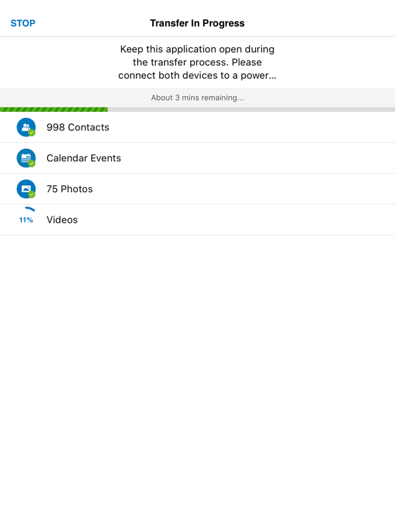 Transfer Wizard supports content transfers between most Apple iOS devices.