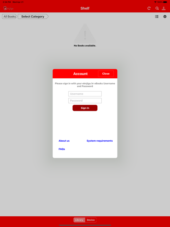2. Pritisnite ikonu "Osvježi"i prikazati će vam se knjige koje se nalaze unutar Vašeg korisničkog računa.