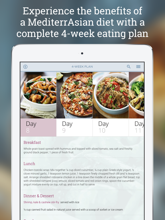 The first app to combine the best features of the world's healthiest and tastiest diets - the Mediterranean diet and Asian diet. Discover the scientifically-proven way to improve your health, lose weight, reduce your risk of chronic disease, and increase your chances of living longer - all while enjoying a wide range of mouthwatering meals.