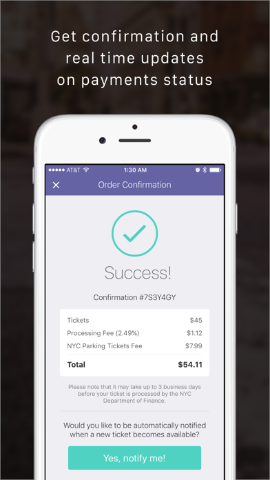 • Notifications – We’ll notify you when there's a new parking ticket for your License Plate # that needs your attention.