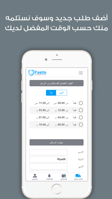 من خلال تطبيق فاستلو يمكن لأي شخص سواء كان فرد أو تاجر طلب أمر توصيل أو شحن وسيقوم مندوبنا بالحضور لباب بيتك ليستلم طلبك. ومن بعدها يمكنك متابعة كل مايستجد على حالة الطلب لحين تسليمه للمستلم