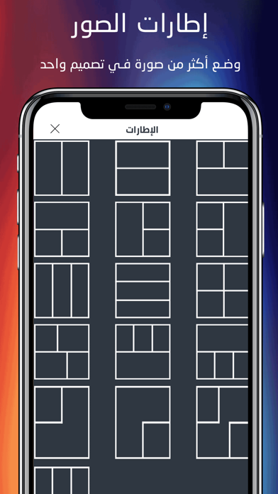 تطبيق للتعديل على الصور، خصائصه: الكتابة على الصور بخطوط عربية، تعديل الألوان والمؤثرات على الصور، تقسيم الصورة الى عدة صور ورفعها على الشبكات الاجتماعية، إطارات الصور