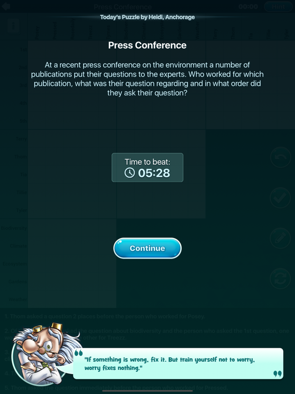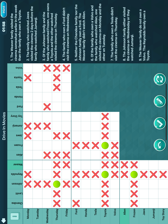 5 STARS from Claudiama. Best Logic Puzzle App. This is the best logic grid puzzle app in the App Store for the variety and complexity of their puzzles.