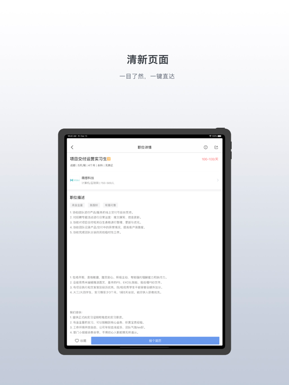 上百个岗位类别,数百万个热门实习职位,已成功达成数百万次候选人入职。名企offer,实习内推,你想要的好工作我们都有!