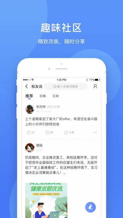 网罗校招信息、应届生职位,整合网络资源,精选网申、宣讲信息以及校招干货,求职路上陪你一起打怪升级。