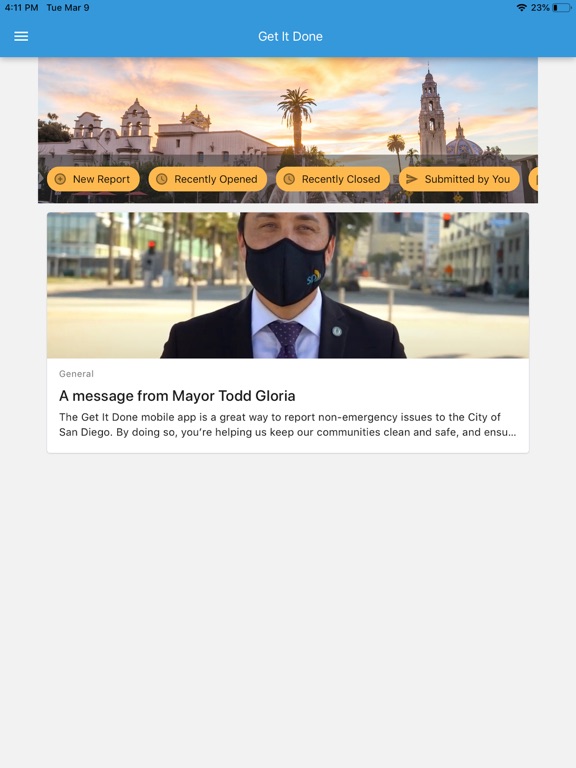 Get It Done San Diego is the official app for reporting non-emergency problems to the City of San Diego. App users can report problems like potholes or graffiti and connect directly to the City’s work tracking system.