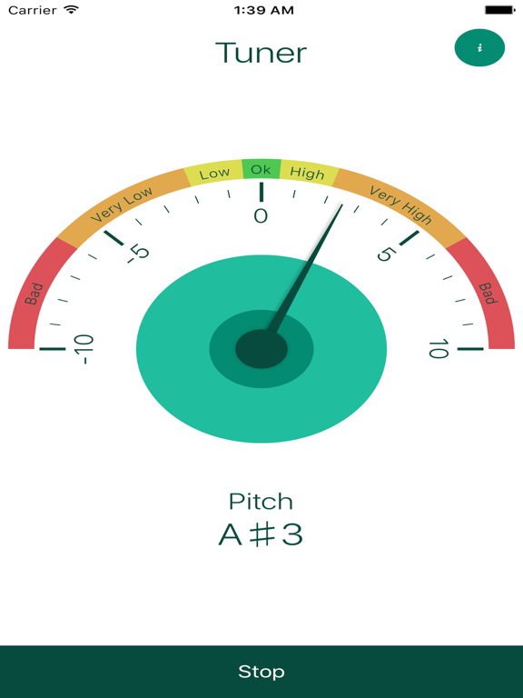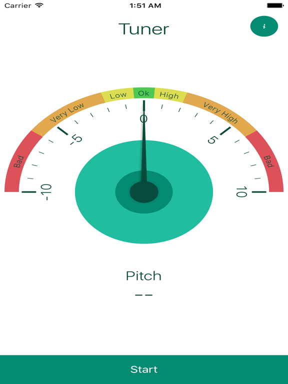 It's very easy to use for your musical instrument tuning. Simply touch the start button, play your instrument, and the precise pitch will be shown.