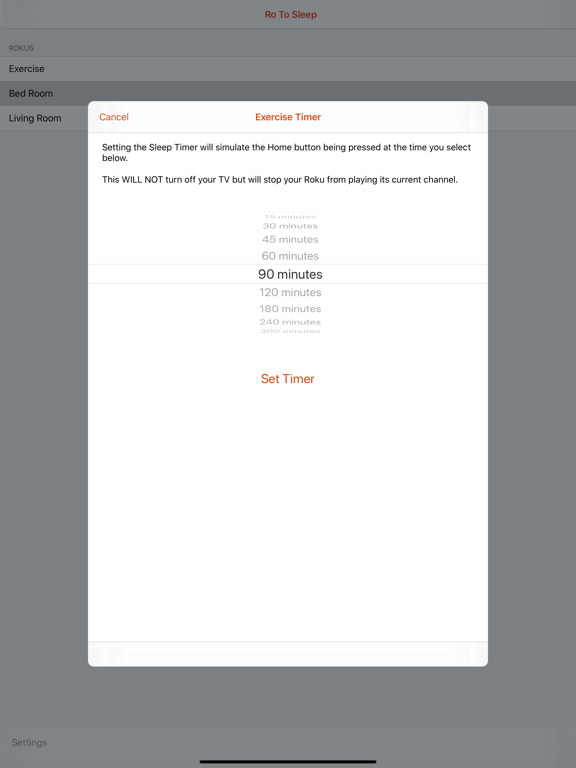 Ro To Sleep adds a sleep timer ability to your Roku. Set the timer and Ro To Sleep will stop your Roku from playing after the interval you set. There is no need to leave Ro To Sleep open after setting a timer - the timer will still work even if you start using a different app. Ro To Sleep WILL NOT turn off your TV.
