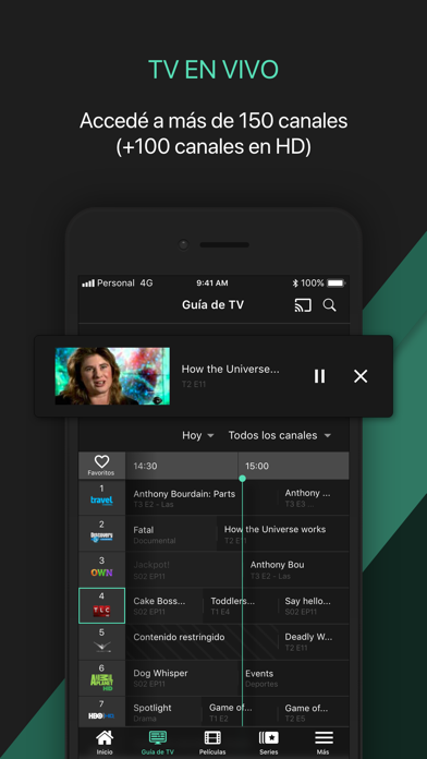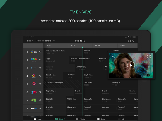 - Más de 150 canales de televisión en vivo (Más de 100 en HD).