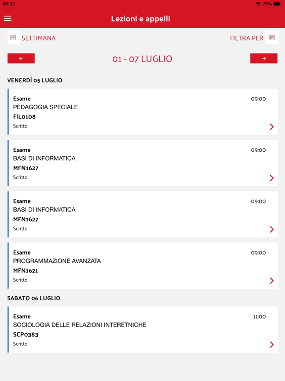 - consultare l'orario delle lezioni (visibile solo per i Corsi di Studi che hanno adottato il sistema di gestione degli orari e delle aule per le lezioni University Planner UP).